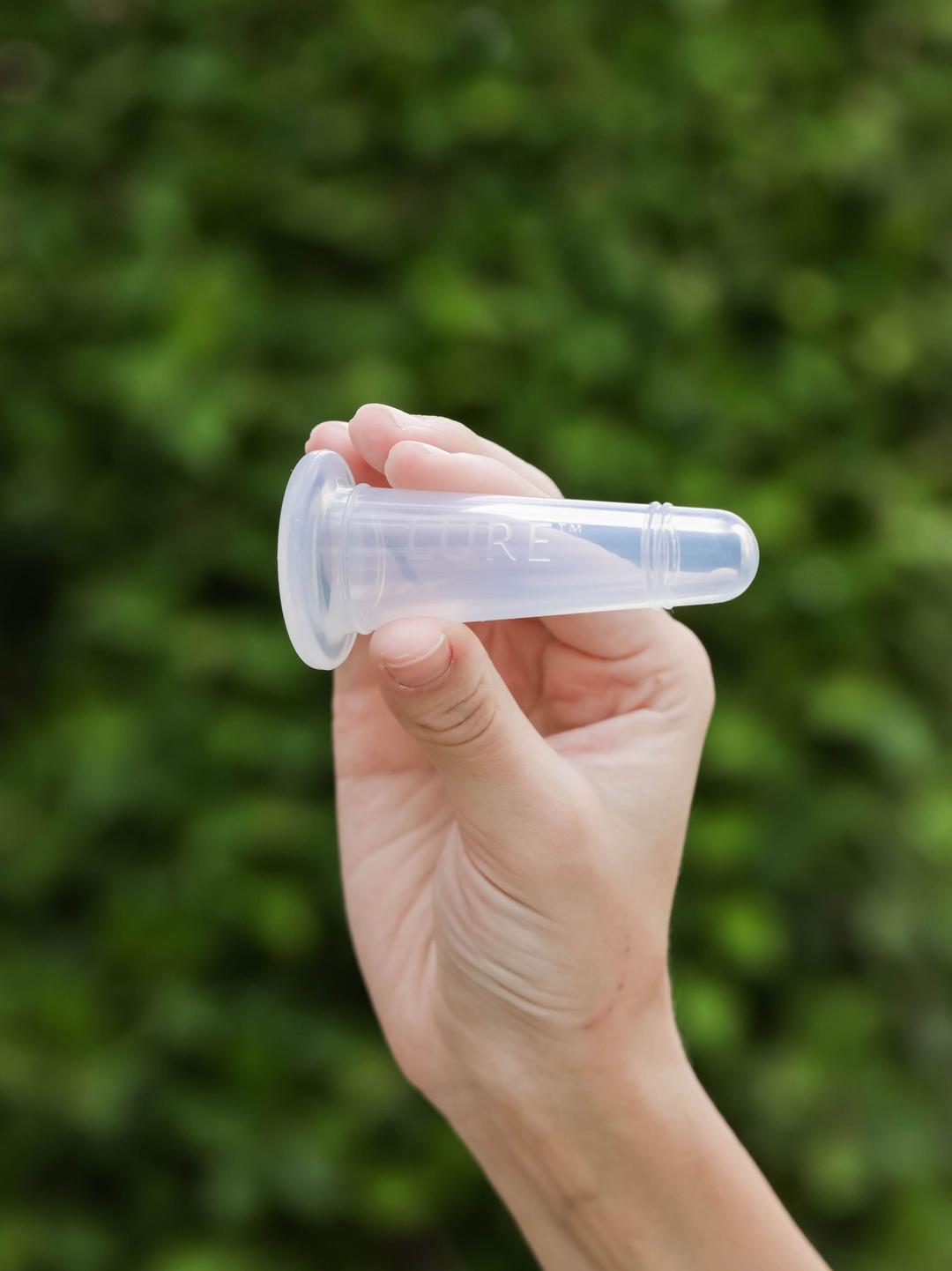 Step 2: Apply Lure’s Daily Glow 100% natural multivitamin botanical oil liberally to face and neck for smooth and easy glide of your cup.